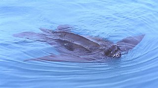 So far this year 12 sightings have been reported from south west Wales and England, seven of which have been seen in the last fortnight. "The leatherback is the largest of all marine turtle species and at a distance could be mistaken for a floating log, but if you approach them slowly and carefully, once you see their large reptilian head, massive flippers and ridged leathery shell you can't mistake them for anything else," said Dr Richardson.
