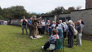 Hut 9, Island Farm, crowd gathered as part of Open Doors