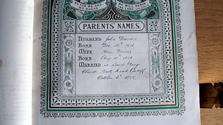 To my amazement, further inside the book were several neatly completed pages of vital family information - details of Emma's parents as well as their marriage on 6 October at St Mary's Church on Bute Road in Cardiff.