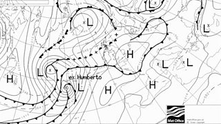 On Saturday the remains of tropical storm Humberto will be over the Atlantic Ocean. This will move north towards Iceland taking warmer, tropical air with it and allow high pressure to build over Britain.