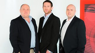 Radio Wales Sport presenters Rick O'Shea, Steffan Garrero and Simon Davies