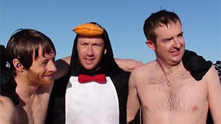 Andrew Wilkinson, myself and Jonathan Cosson immediately after the 2010 Xmas Day swim at Coney Beach.