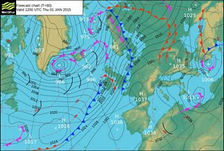 New Year’s Day will be mild and windy with temperatures reaching 12 or 13° Celsius. Spots of drizzle are likely but parts of mid and north Wales should be dry and bright for a time. However rain will spread from the north-west during the afternoon and evening – some of this rain will be heavy with gales.