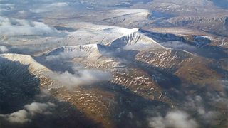 Snow-capped Brecon Beacons from the air by Hywel Meredydd Davies.