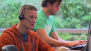 Call centre staff Kieran Vye (left) and Kristian Thomas