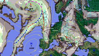 Low pressure near Iceland, and the remains of the storm that hit the northeast USA - not heading our way but its fronts are - will bring a mixture of rain, sleet and snow followed by milder Atlantic air.