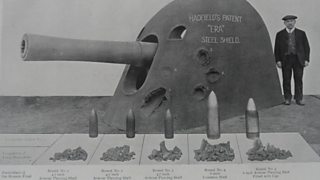 Photograph from the Mond Nickel Company brochure showing the benefits of nickel armour
