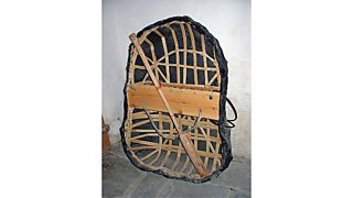 Weighing just over 12 kg, each coracle was designed to be carried on a man's back, a strap over the chest holding the boat steady.