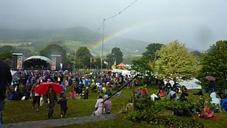 Saturday is all about a lot of running about with radio interviews and sessions, and being slightly taken aback by the sun coming out; not particularly a good thing when I'm wearing plastic trousers! I do a live show from the Green Man FM temporary studio, and broadcast all across Wales on BBC Radio Wales - listen here until the weekend.