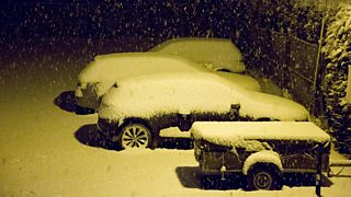 Monday evening's showers will affect western parts overnight, falling as rain, sleet or hail on the coast and as snow inland, with a few centimetres on the Preseli mountains. Elsewhere it will be dry with a widespread frost, a few freezing fog patches and a warning of icy patches.