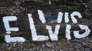 Just beside the A44 near Eisteddfa Gurig, about 10 miles outside Aberystwyth in mid Wales, you'll see it. In a dip in the road, there's a scruffy-looking rock. On it, stark white letters are painted: ELVIS.