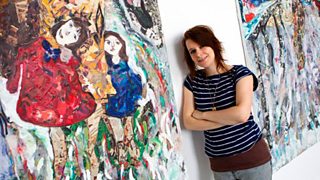 Cardiff School of Arts and Design fine art painting student Hannah Jump with her work.