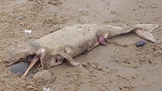 A friend of mine had taken some photos of it whilst walking 'wilmot' the dog and e-mailed them in describing it as 'a dead dolphin'.