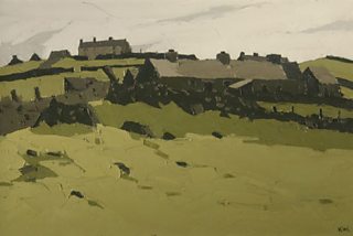 Sir Kyffin Williams' oil on canvas - Cottages, Cesarea. Photo courtesy of Rogers Jones & Co