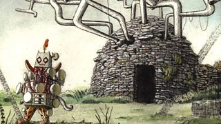 "When the motion-sensitive cell jerks the motor into action, its hand moves a 'pencil' across the floor through the arc of one of a series of heavily inscribed circles. Its hair is unkempt; it wears an animal skin tunic like some kind of hermit, prophet or Palaeolithic cave-dweller. Even before you approach it it's a troubling presence."