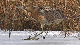 At Leighton Moss Reserve in England they are so worried about bitterns starving to death that the RSPB wardens have resorted to putting small fish out onto the ice to help feed the birds.