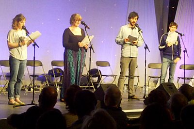Monday morning. Time to rehearse. All goes well. The performers are incredible, getting a handle on the characters in record-quick time. I have to say here and now how much I loved the actors for giving it their all and jumping into the spirit of the thing. We had a short break and then we were in the packed venue, ready to begin. Butterflies in the stomach were quickly replaced with a big smile as the audience start to laugh and continue laughing.