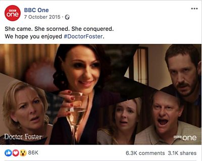 For its stunning first season finale, Doctor Foster delivered BBC One’s most liked Facebook post of the year: