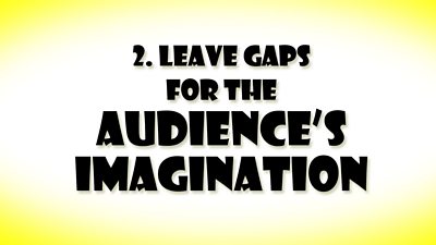So much of the best story-telling is incomplete – encourage the audience to fill in story gaps for themselves. The best stories ask us (the audience) to do much of the work, providing our own imaginative answers to the spaces in the story.