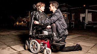 Filming Don't Take My Baby - Anna Watson (Ruth Madeley), Tom Spencer (Adam Long) (Photo: Emilie Sandy/BBC Pictures)