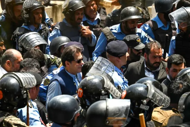 ပါကစ္စတန် တရားရုံးက ဝန်ကြီးချုပ်ဟောင်း အီမရန်ခမ်းကို ထောင်ဒဏ် ၃ နှစ်ချမှတ်လိုက်ပြီးတဲ့နောက် ရဲတပ်ဖွဲ့က သူ့ကို ဖမ်းဆီးလိုက်ပါတယ်။