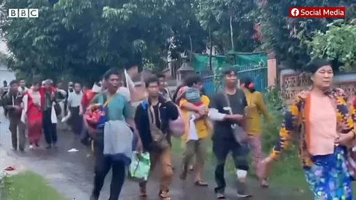 “ကျွန်တော့်အိမ်တော့ မထိသေးဘူး။ အိမ်အနောက်က ဓမ္မာရုံဘက်မှာတော့ အလောင်းတွေပြည့်နေတယ်။ ရပ်ကွက် (၉)ထဲက တချို့အိမ် တွေကပြာဖြစ်တဲ့အထိ မီးလောင်သွားတယ်” လို့ မြို့ခံတစ်ဦးက ဘီဘီစီ ကိုပြောပါတယ်။