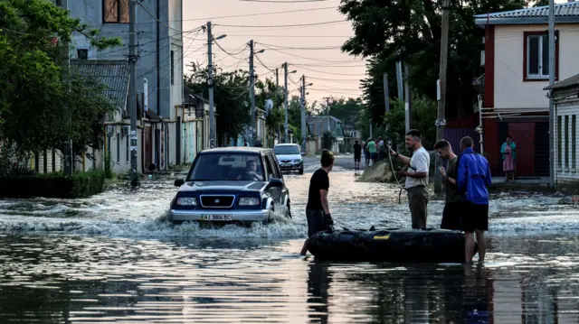 ယူကရိန်းနိုင်ငံထဲက ရုရှားထိန်းချုပ်မှုအောက်နေတဲ့ နိုဗာ ခါခေါ့ဗ်ခါမြို့အနီးမှာ ရေထိန်းဆည်ပြိုကျမှုဖြစ်ခဲ့တာကြောင့် ထောင်နဲ့ချီတဲ့ ဒေသခံတွေဟာ ရေဘေးလွတ်ရာကို တိမ်းရှောင်နေကြရပါတယ်။