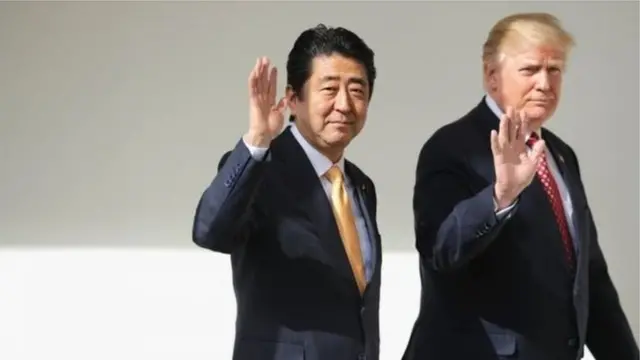 ထရမ့် သမ္မတ တာဝန်ယူပြီး နောက်ပိုင်း ပထမဆုံး နိုင်ငံခြား ခေါင်းဆောင်က ဗြိတိန် ဝန်ကြီးချုပ် ထရီဇာမေ ဖြစ်ပြီး အခု ဂျပန် ဝန်ကြီးချုပ် ဟာ ဒုတိယမြောက် နိုင်ငံခြား ဧည့်သည်တော် ဖြစ်ပါတယ်။