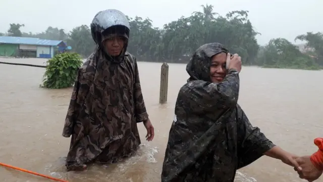 သံဖြူဇရပ်နဲ့ ရေးမြို့နယ်မှာ မိုး သည်းသည်းထန် ရွာသွန်းပြီး ရေကြီးရေလျှံလို့ ည ၁ နာရီလောက်က စတင်ပြီး မြို့ပေါ်ရပ်ကွက်မှာ နေထိုင်ကြသူတချို့ကို ကယ်ဆယ်ပေးရတယ်လို့ ကူညီ ကယ်ဆယ်ရေး ဆောင်ရွက် နေသူတွေက ပြောပါတယ်။