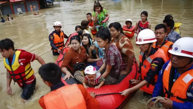 ရေဘေးသင့်တဲ့ ပဲခူးကို ရောက်နေတဲ့ ဘီဘီစီသတင်းထောက်ကတော့ သူရောက်နေတဲ့ နေရာ တချို့မှာ ရေတွေက ခါးလောက်၊ တချို့နေရာက လူတရပ်လောက် ရေနစ် မြုပ် တာကြောင့် ဒေသခံတွေက လှေကို အသုံးပြု သွားနေရသလို တချို့နေရာမှာ ရေကူးပြီး သွားနေတာကို မြင်ရတယ်လို့ ပြောပါတယ်။