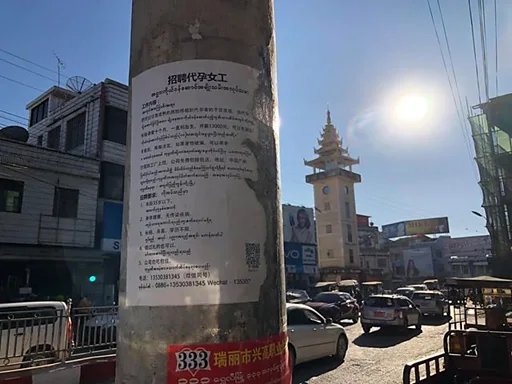 တရုတ်နိုင်ငံ၊ ကွမ်ကျိုးမြို့က တရုတ်အမျိုးသားတွေအတွက် အငှားကိုယ်ဝန်ဆောင်ပေးနိုင်မယ့် အမျိုးသမီး တွေ ခေါ်ယူတဲ့ကြော်ငြာစာတွေကို ဒီဇင်ဘာ ၁၀ ရက်နေ့မနက်ပိုင်းက မူဆယ်မြို့က နာရီစင်အနီးမှာရှိတဲ့ ဓာတ်တိုင်တွေနဲ့ မြို့လယ်ရပ်ကွက်အချို့ နေအိမ်နံရံတွေမှာ မူဆယ်မြို့ခံတွေ တွေ့ရှိခဲ့ရ တာပါ။