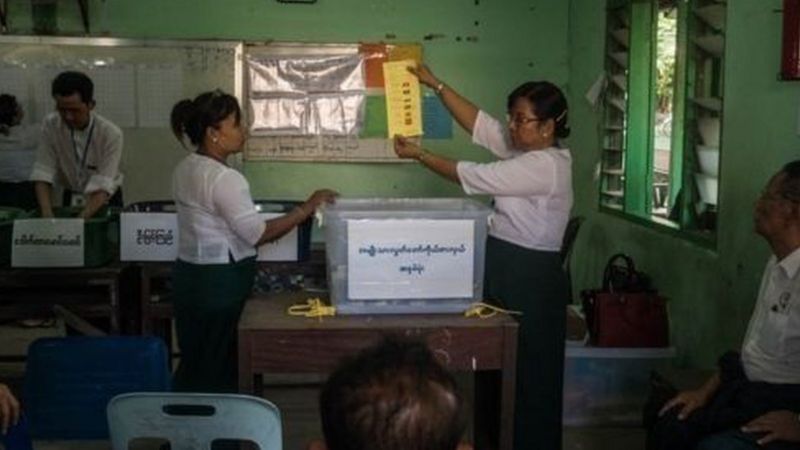 ရခိုင်ပြည်နယ်က မြို့နယ် ၉ ခု နဲ့ ရှမ်းပြည်နယ်က မြို့နယ် ၆ ခုမှာ လွတ်လပ်ပြီးတရားမျှတမယ့် အခြေအနေမရှိလို့ ရွေးကောက်ပွဲ လုံးဝကျင်းပနိုင်မှာ မဟုတ်ဘူးလို့ ပြည်ထောင်စုရွေးကောက်ပွဲကော်မရှင်က ကြေညာလိုက်ပါတယ်။