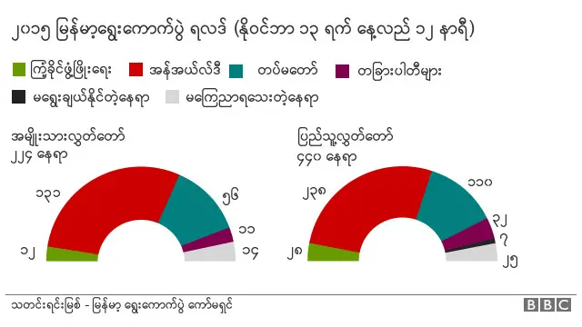 လက်ရှိအာဏာရ အစိုးရရဲ့ ကြံ့ခိုင်ဖွံ့ဖြိုးရေးပါတီကတော့ ပြည်သူ့လွှတ်တော်မှာ ၂၈ နေရာနဲ့ အမျိုးသားလွှတ်တော်မှာ ၁၂ နေရာ သာရရှိထားပါသေးတယ်။