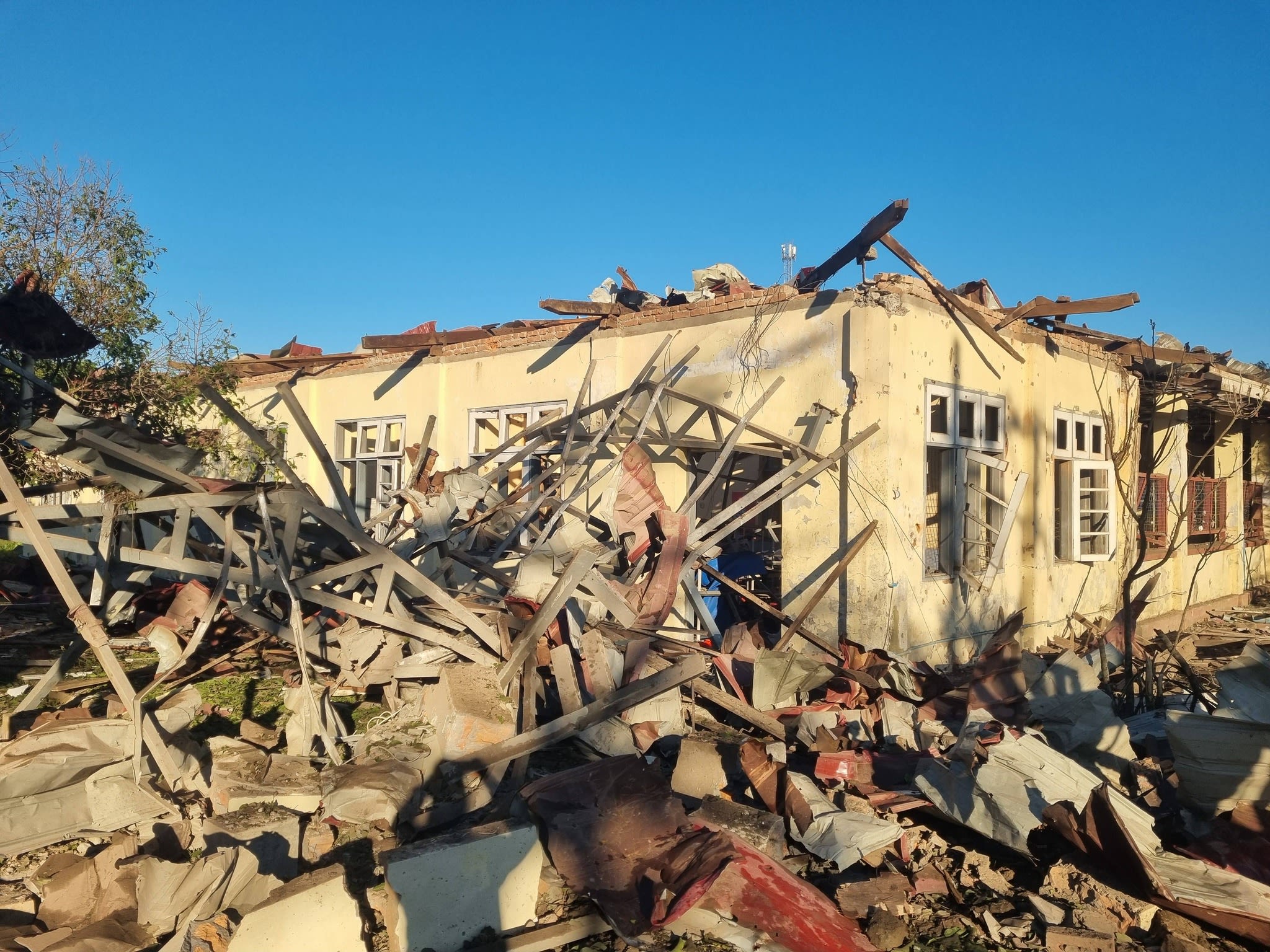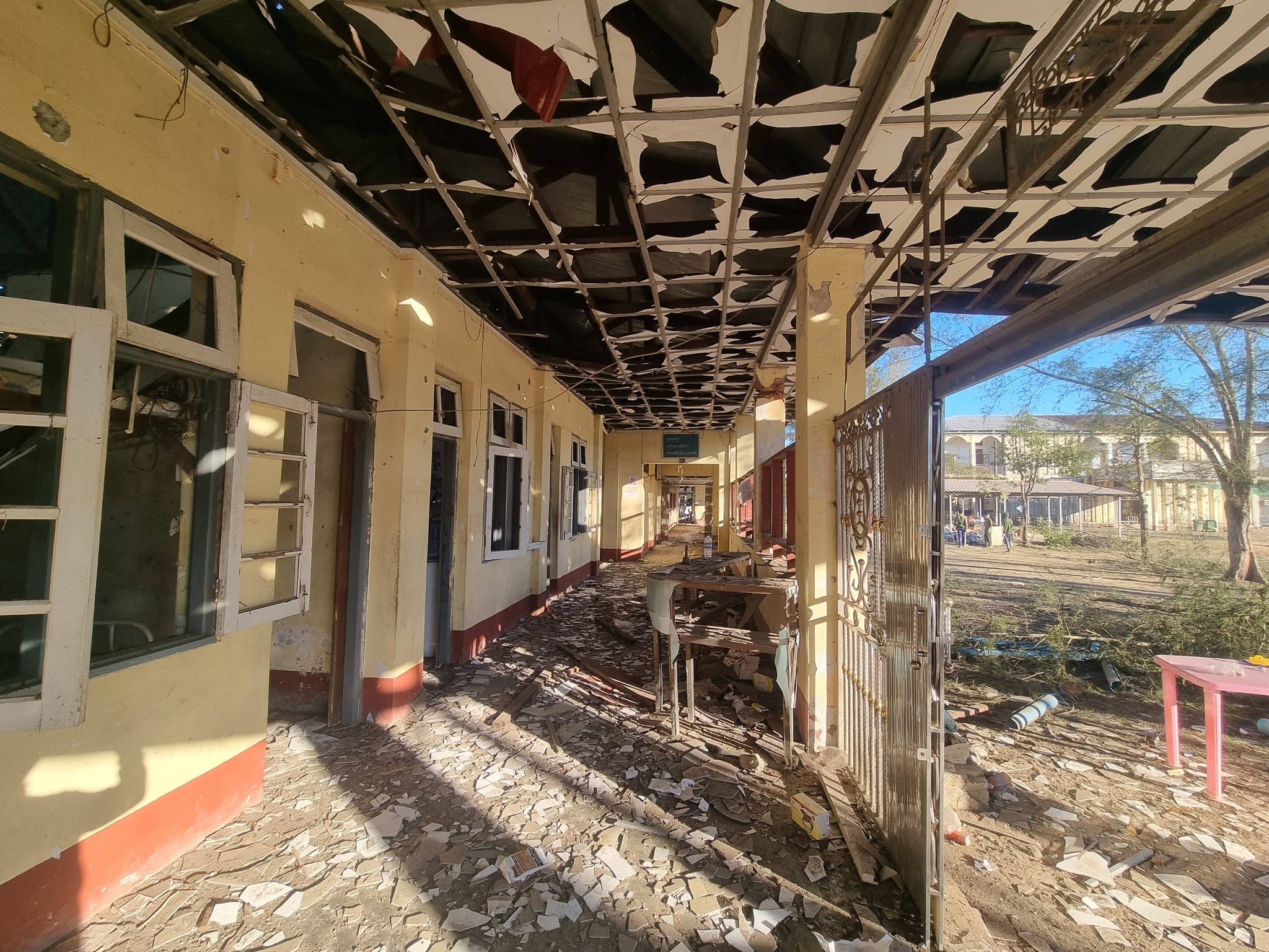 မြောက်ဦးဆေးရုံကို စစ်တပ်က လေကြောင်းတိုက်ခိုက်မှုအပြီးမြင်ကွင်း (Wai Hun Aung)