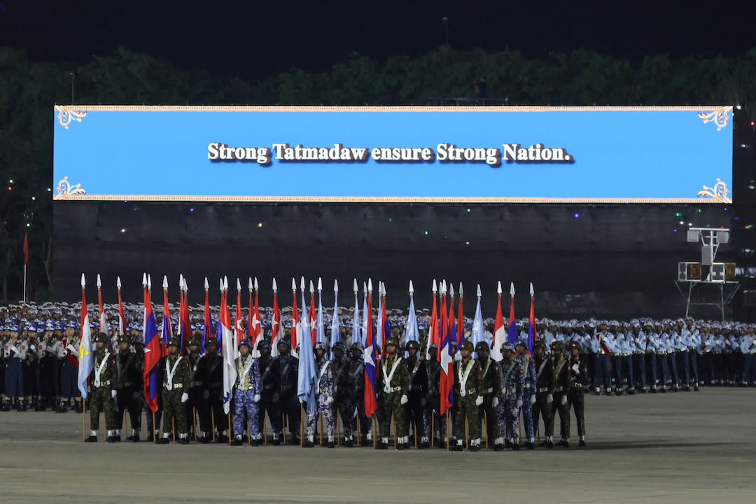 မတ်လ ၂၇ ရက်က နေပြည်တော်မှာ ကျင်းပခဲ့တဲ့ တပ်မတော်နေ့မှာ စစ်ချီတက်နေတဲ့ မြင်ကွင်း (Getty Images)