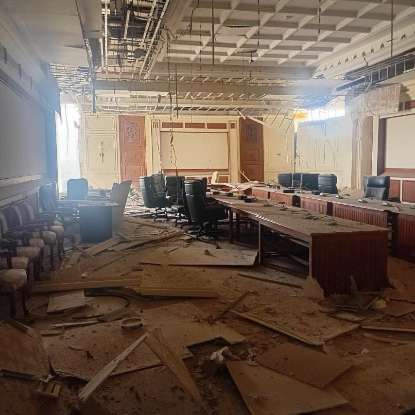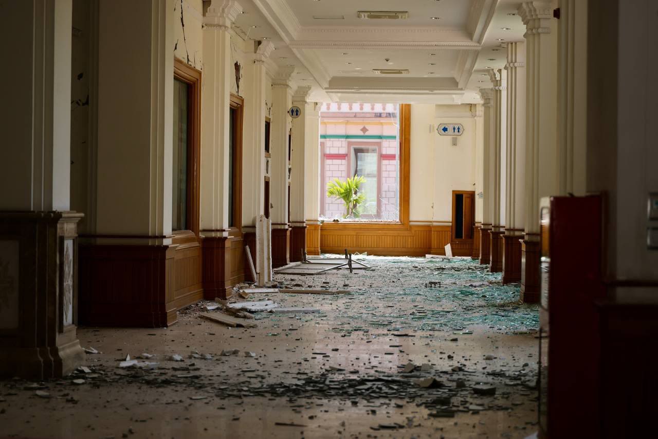 အပျက်အစီးတွေထဲမှာ ဗိုလ်ချုပ်မှူးကြီးမင်းအောင်လှိုင် အစည်းအဝေးလုပ်လေ့ရှိတဲ့ ခန်းမတွေပါ ပါဝင်ခဲ့ပါတယ်။