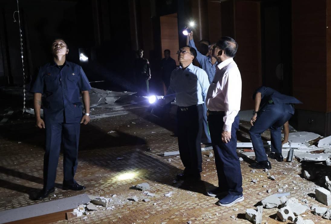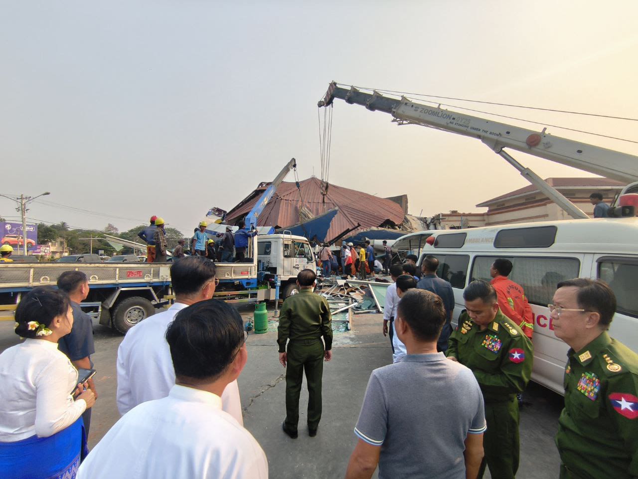 ဗိုလ်ချုပ်မှူးကြီးမင်းအောင်လှိုင် အစည်းအဝေးပြုလုပ်ရာခန်းမကို ငလျင်လှုပ်ပြီးနောက် တွေ့ရစဥ်