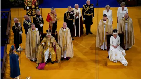ဘုရင်ကြီးနဲ့ မိဖုရားတို့ဟာ ဝက်စ်မင်စတာက ဘုရားကျောင်း စင်မြင့်မှာ နေရာယူရပြီး နန်းတက် ဇာတ်ခုံစင်မြင့်လို့ခေါ်တဲ့ ဒီနေရာမှာ အစဉ်အလာအတိုင်း လုပ်ရိုး လုပ်စဉ်တွေကို မြင်ရတော့မှာ ဖြစ်ပါတယ်။