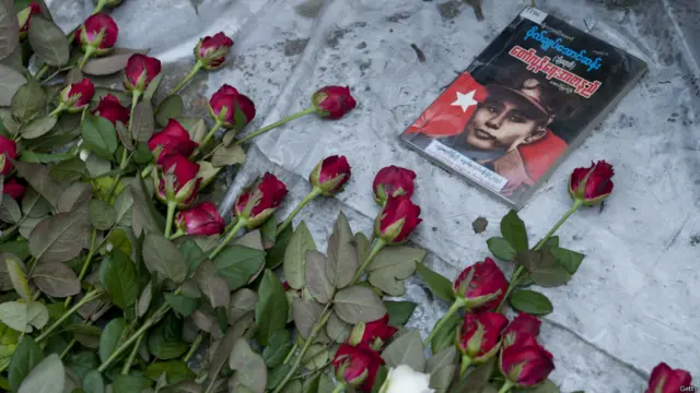 ဗိုလ်ချုပ်ပန်းခြံက ဗိုလ်ချုပ်ကြေးရုပ် ရှေ့မှာလည်း လူငယ်တွေ သွားရောက် အလေးပြုခဲ့။