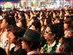 ကျမောချမ်းဖျော်ဖြေစဉ် စင်အောက်က ပရိတ်သတ်များက ပန်းစည်းများဖြင့် အားပေး