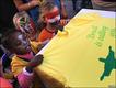 • ဘောလုံးအင်္ကျီလက်ဆောင်ရဖို့ တန်းစီနေကြတဲ့ ကလေးများ