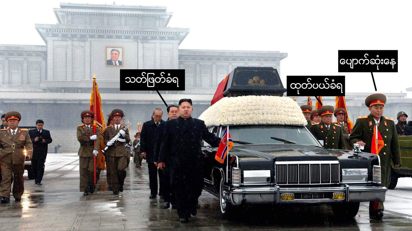 ကားေဘးမွာ အာဏာ႐ွင္ႀကီးရဲ့သားနဲ႔ ဆက္ခံသူ ကင္ဂ်ံဳအြန္းက လမ္းေလွ်ာက္ လိုက္လာပါတယ္။ (၂၇) ႏွစ္သာ ႐ွိေသးတဲ့ ေခါင္းေဆာင္သစ္က စိတ္တင္းက်ပ္ ေနပုံရပါတယ္။ အခမ္းအနားတေလွ်ာက္လုံးလည္း သူ မ်က္ရည္ေတြ ေတြေတြ က်ဆင္းေနပါတယ္။