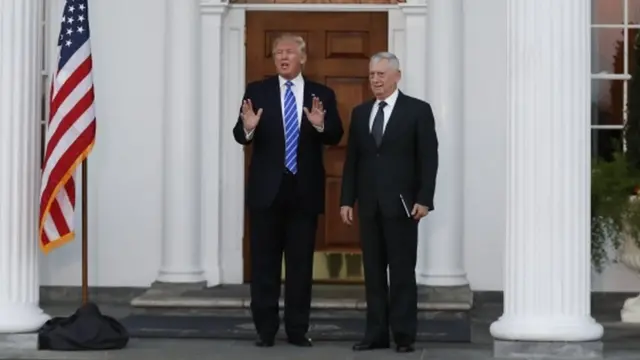 ထရမ့်နဲ့ တွေ့နေ ကြသူတွေထဲ အမေရိကန် စစ်တပ် အတွင်း Mad Dog ခွေးရူး ဆိုတဲ့ နာမည်ပြောင်နဲ့ အသိများကြတဲ့ ဗိုလ်ချုပ်ကြီး ဂျိမ်းစ် မက်တစ် လည်း ပါဝင် နေပြီး၊ ဗိုလ်ချုပ်ကြီး မက်တစ်ဟာ ကာကွယ်ရေး ဝန်ကြီး ဖြစ်လာဖို့ အလားအလာ ကောင်းနေပါတယ်။