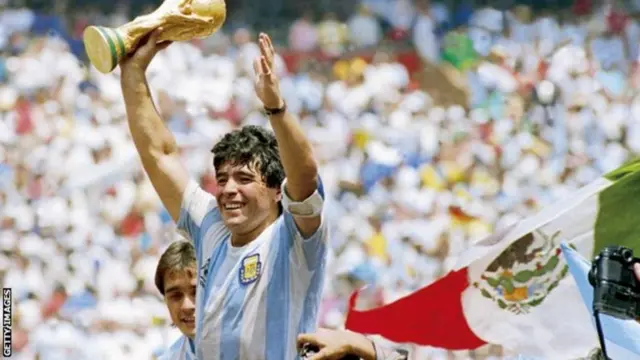 မာရာဒိုနာဟာ အာဂျင်တီးနား လက်ရွေးစင်အသင်းနဲ့ အတူ ၁၉၈၆ မှာ ကမ္ဘာ့ဖလားဆွတ်ခူးခဲ့ပြီး အင်္ဂလန်အသင်းနဲ့ ကွာတားဖိုင်နယ် ပွဲစဥ်မှာ" ဘုရားပေးသောလက် "ဆိုပြီး လက်နဲ့ ပုတ်သွင်းခဲ့တဲ့ အငြင်းပွားဖွယ် အနိုင်ဂိုးနဲ့ အနိုင်ရရှိခဲ့ပါတယ်။