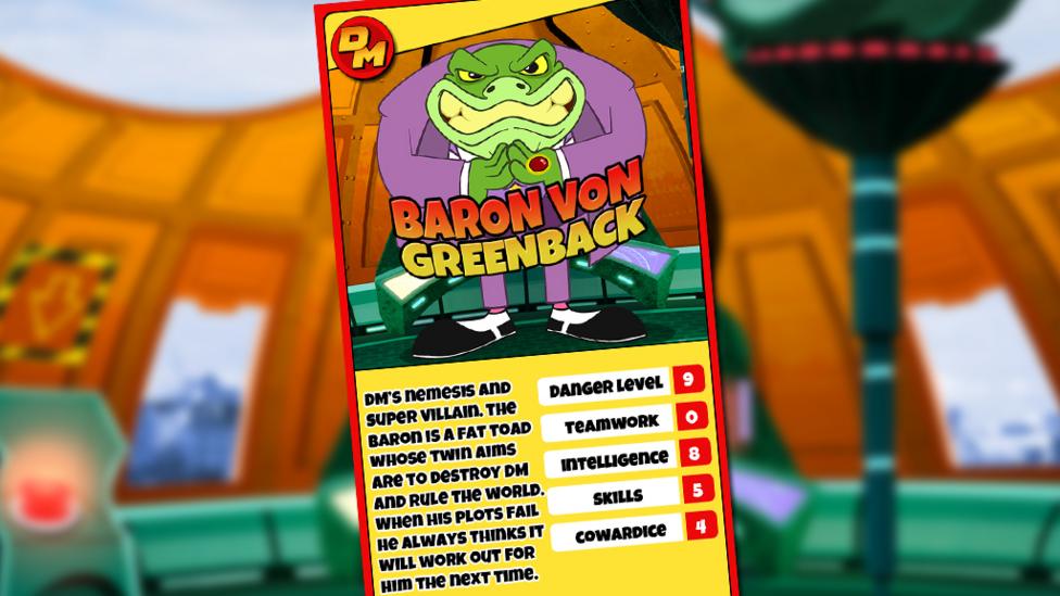 DM’s nemesis and super villain. The Baron is a fat toad whose twin aims are to destroy DM and rule the world. When his plots fail he always thinks it will work out for him the next time.