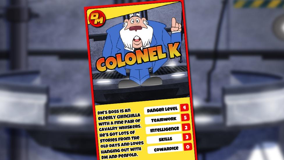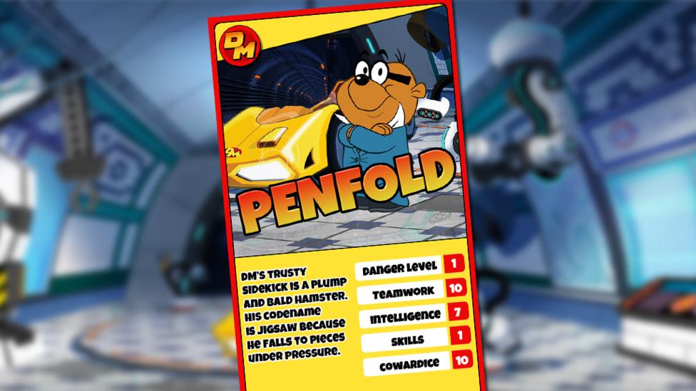 DM’s trusty sidekick is a plump and bald hamster. His codename is Jigsaw because he falls to pieces under pressure.