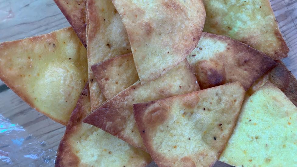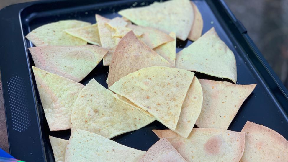 This dish is all about the layers, so for the first layer, we need the nachos! These can be made from soft tortillas, which can be purchased from most big supermarkets.