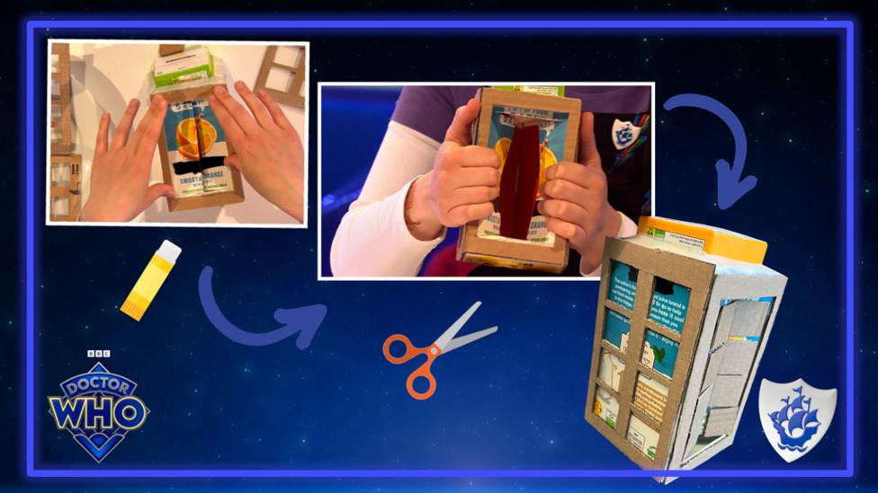 - Decorations (we made a Police Public Call Box sign and notice board, like those found on the real TARDIS)
