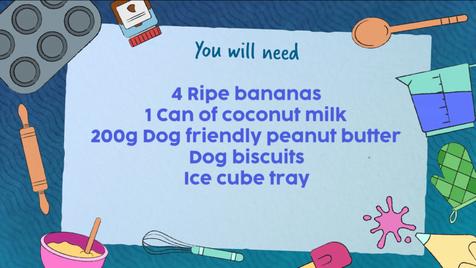 When the weather is hot, and you want to help cool down your dog… why not make this special peanut butter and banana ice cream treat - especially for our furry best friends.