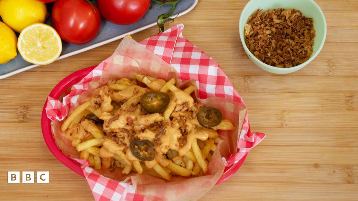 5. Serve over hot fries, topped with chopped coriander, fried onions and chopped jalapeños.